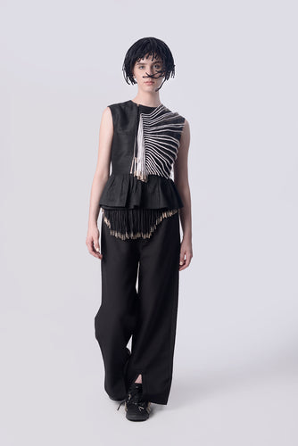 The Stranger is a collection inspired by a french novel by Albert Camus. The writer tries to put a strong point forward about how rigid the fabric of society is and anyone who acts outside of it is treated like a Stranger. The same emotion takes shape as design details that are unconventional and bold. 3D hand embroidery, a technique innovated at the NBC studio is seen being used in various shapes and forms to make clothing that are away from the ordinary for a bold, contemporary woman.